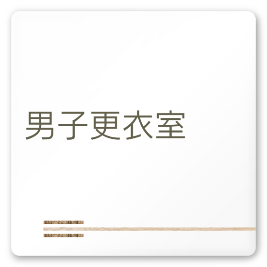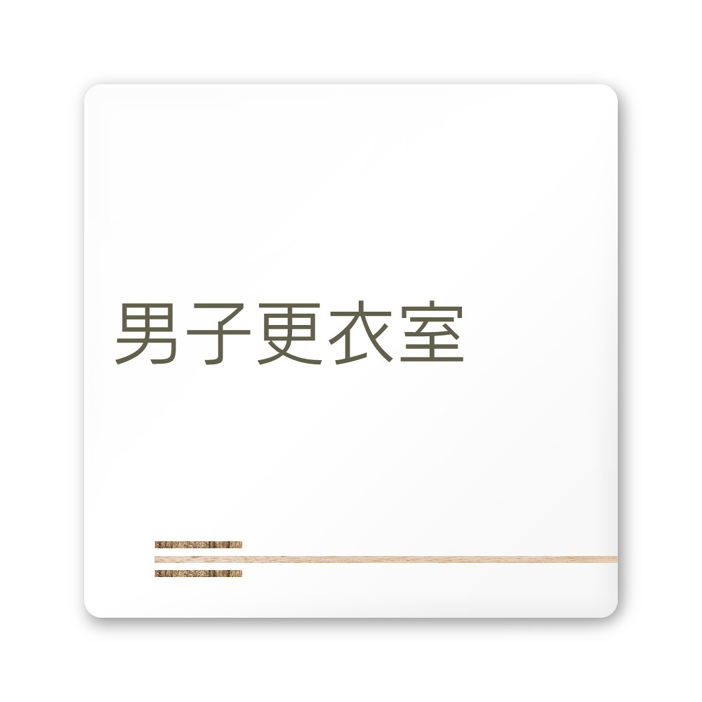 デザイナールームプレート 会社向け 木目横帯 男子更衣室 白マットアクリル W150×H150 (AC-1515-OA-IM1-0108)