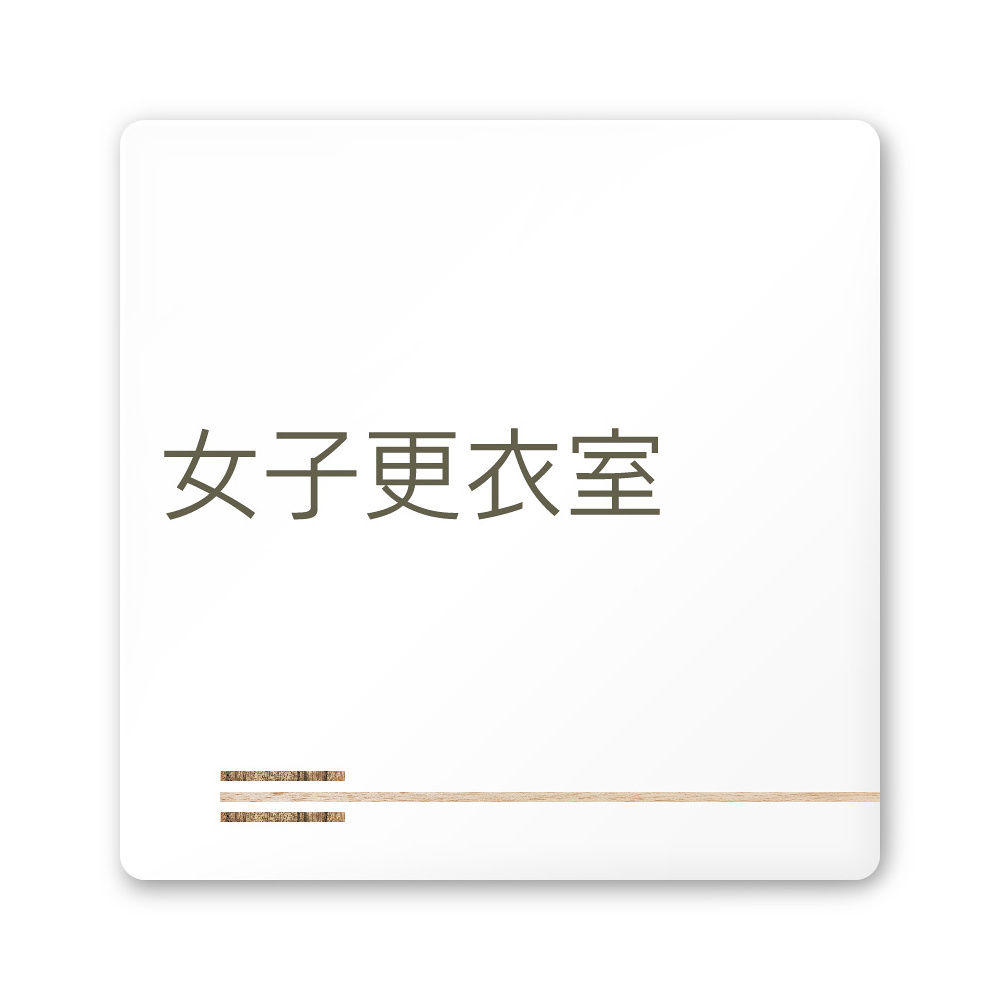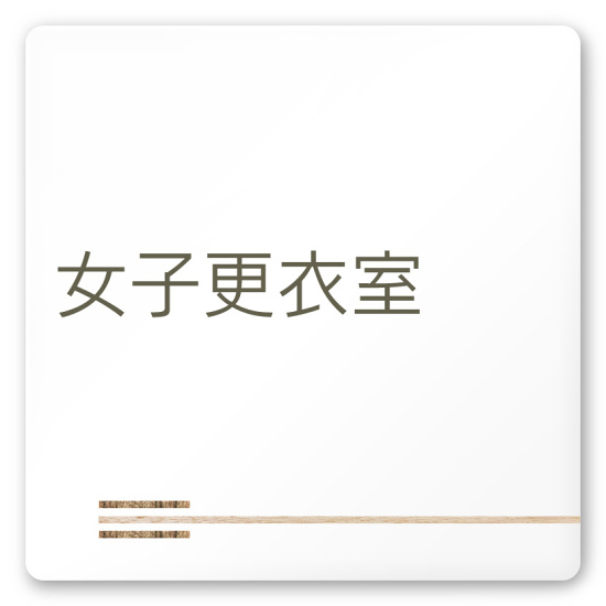 デザイナールームプレート 会社向け 木目横帯 女子更衣室 白マットアクリル W150×H150 (AC-1515-OA-IM1-0109)