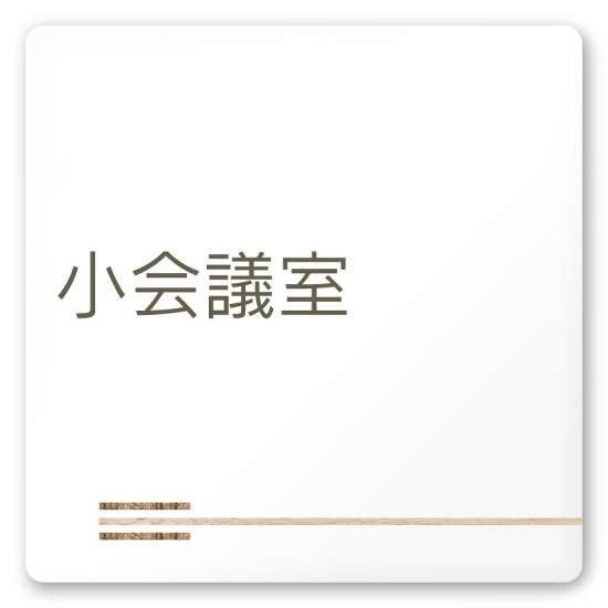 デザイナールームプレート 会社向け 木目横帯 小会議室 白マットアクリル W150×H150 (AC-1515-OA-IM1-0110)