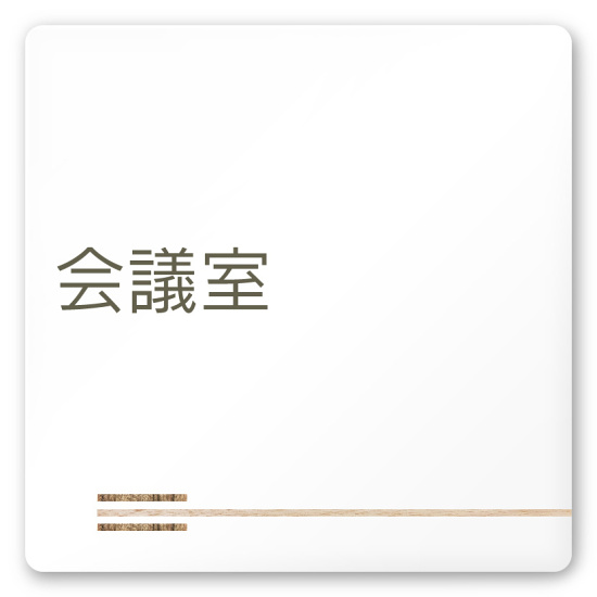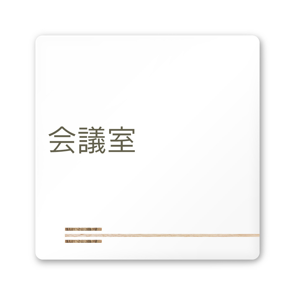 デザイナールームプレート 会社向け 木目横帯 会議室 白マットアクリル W150×H150 (AC-1515-OA-IM1-0112)