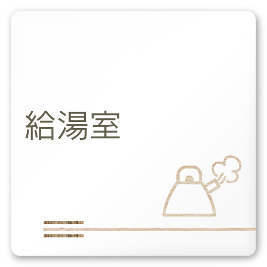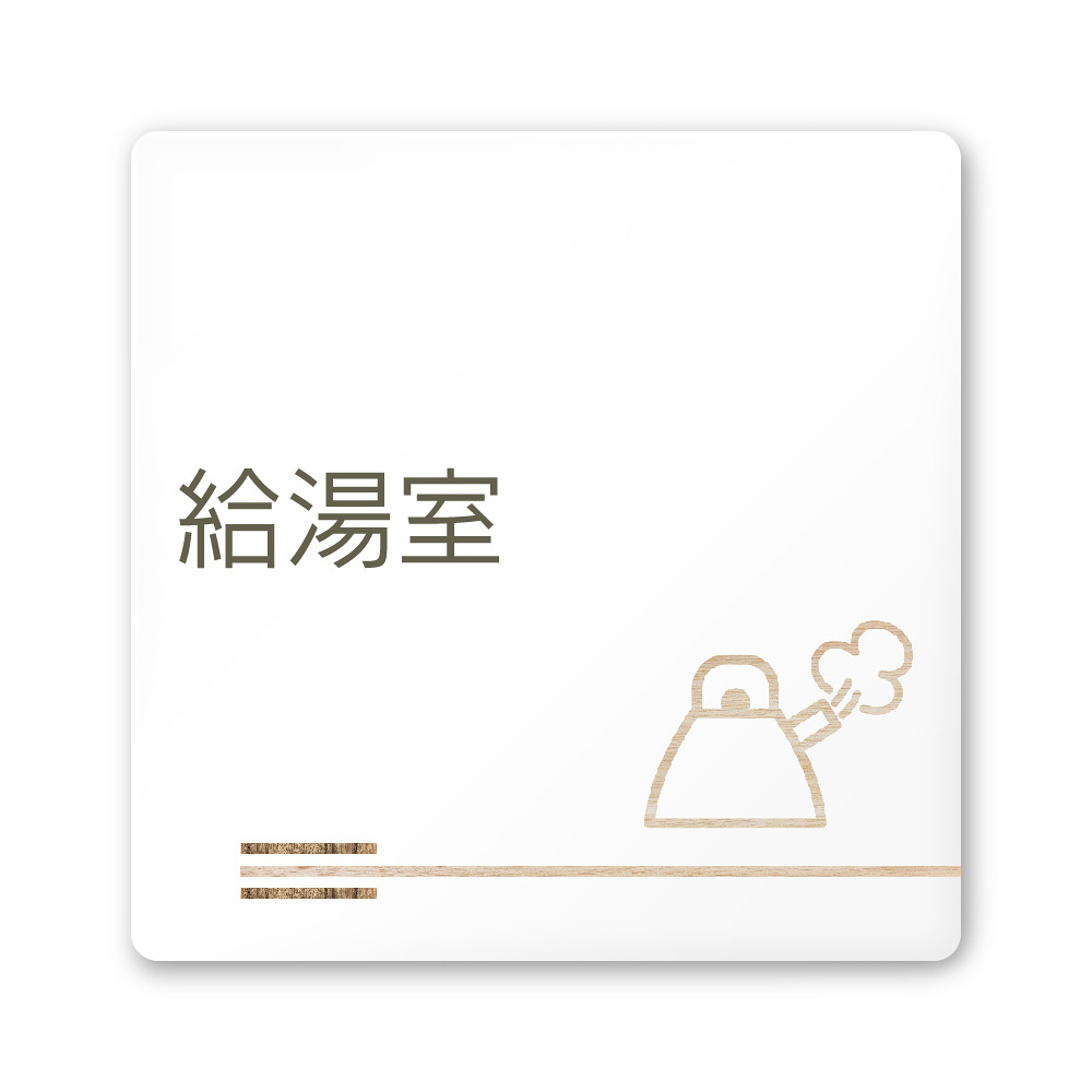 デザイナールームプレート 会社向け 木目横帯 給湯室1 白マットアクリル W150×H150 (AC-1515-OA-IM1-0119)