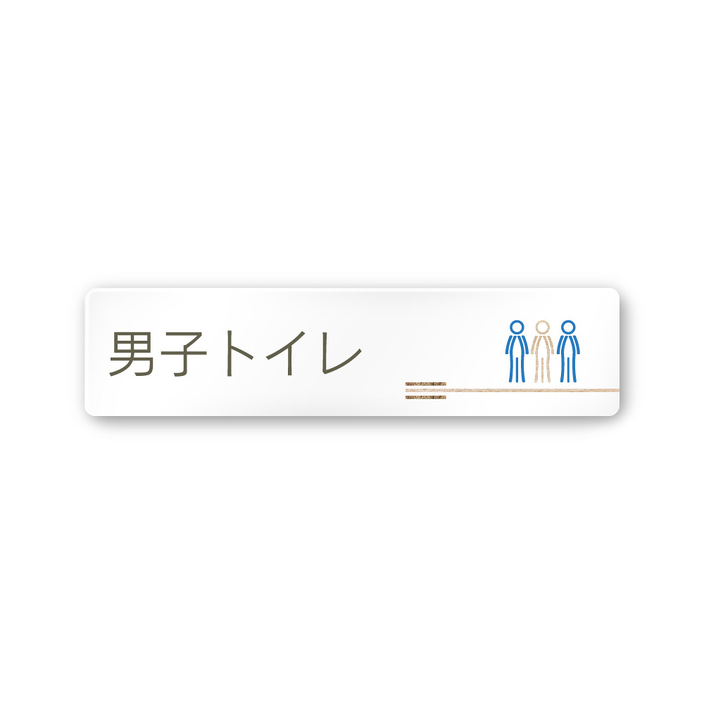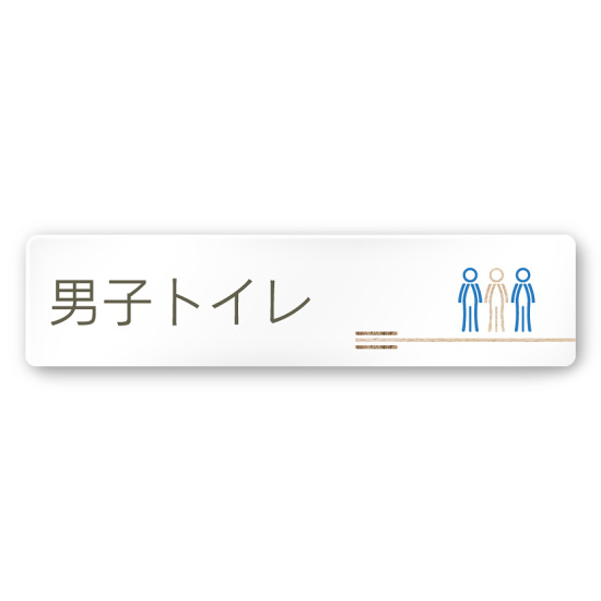 デザイナールームプレート 会社向け 木目横帯 男子トイレ2 白マットアクリル W250×H60 (AC-2560-OA-IM1-0204)