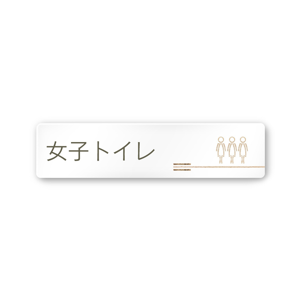 デザイナールームプレート 会社向け 木目横帯 女子トイレ1 白マットアクリル W250×H60 (AC-2560-OA-IM1-0205)
