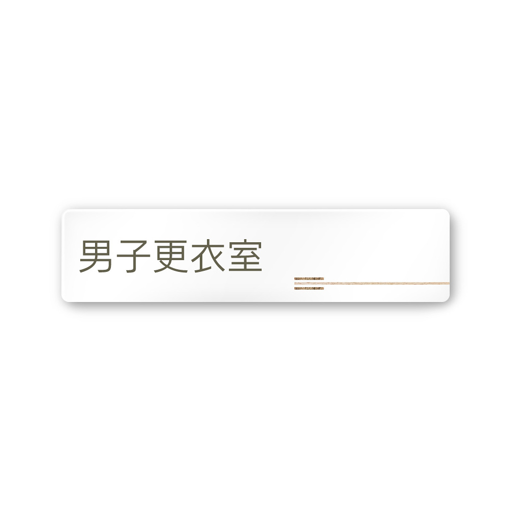 デザイナールームプレート 会社向け 木目横帯 男子更衣室 白マットアクリル W250×H60 (AC-2560-OA-IM1-0208)
