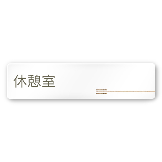 デザイナールームプレート 会社向け 木目横帯 休憩室 白マットアクリル W250×H60 (AC-2560-OA-IM1-0216)