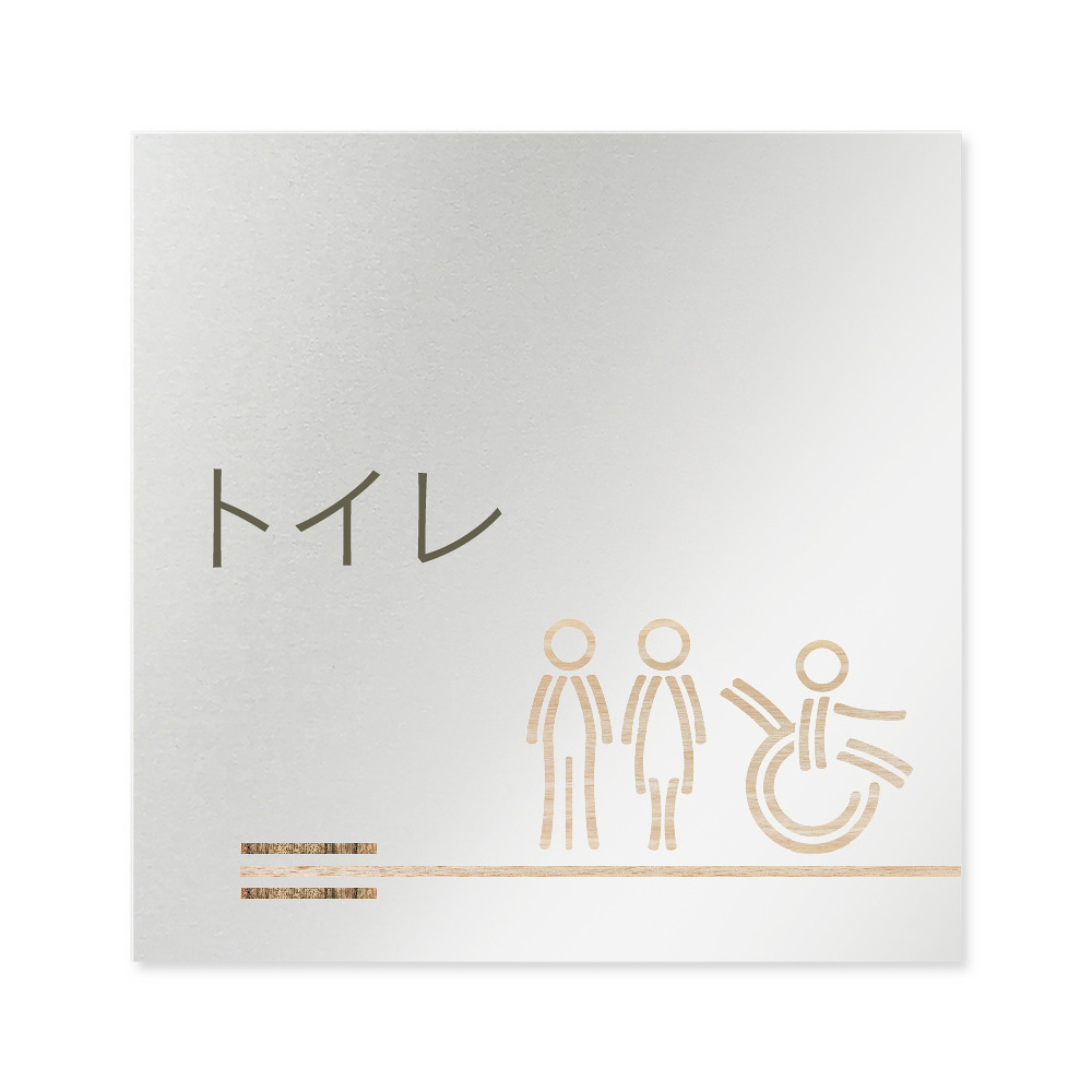 デザイナールームプレート 会社向け 木目横帯 トイレ1 アルミ板 W150×H150 (AL-1515-OB-IM1-0101)