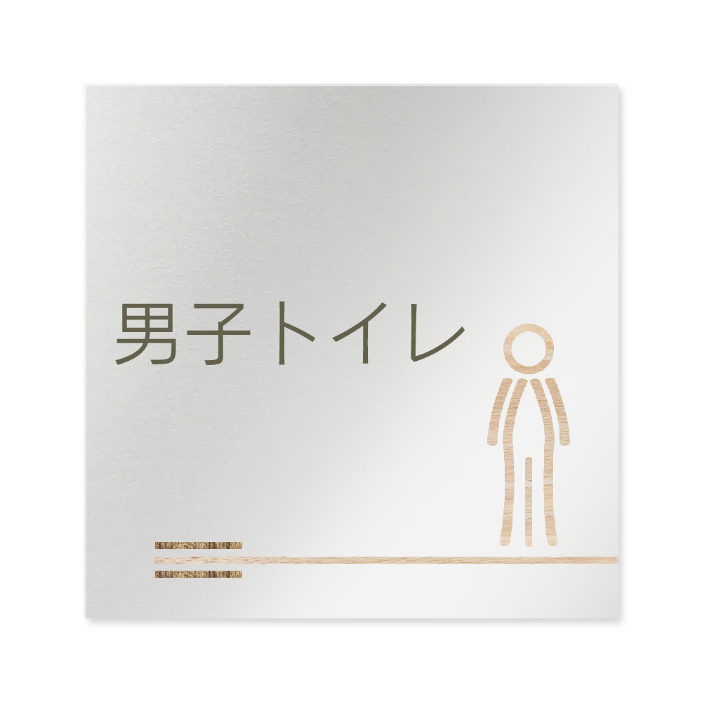 デザイナールームプレート 会社向け 木目横帯 男子トイレ1 アルミ板 W150×H150 (AL-1515-OB-IM1-0103)