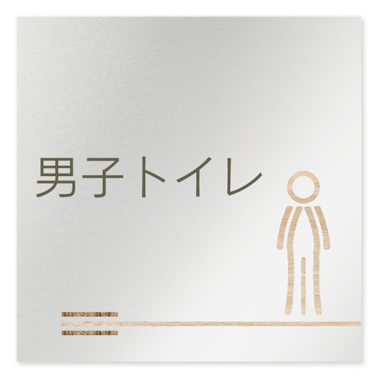 商品説明:デザイナールームプレート 会社向け 木目横帯 男子トイレ1 アルミ板 W150×H150 (AL-1515-OB-IM1-0103)