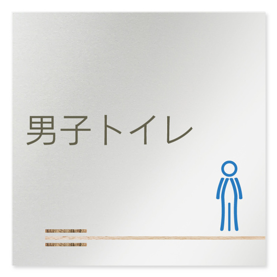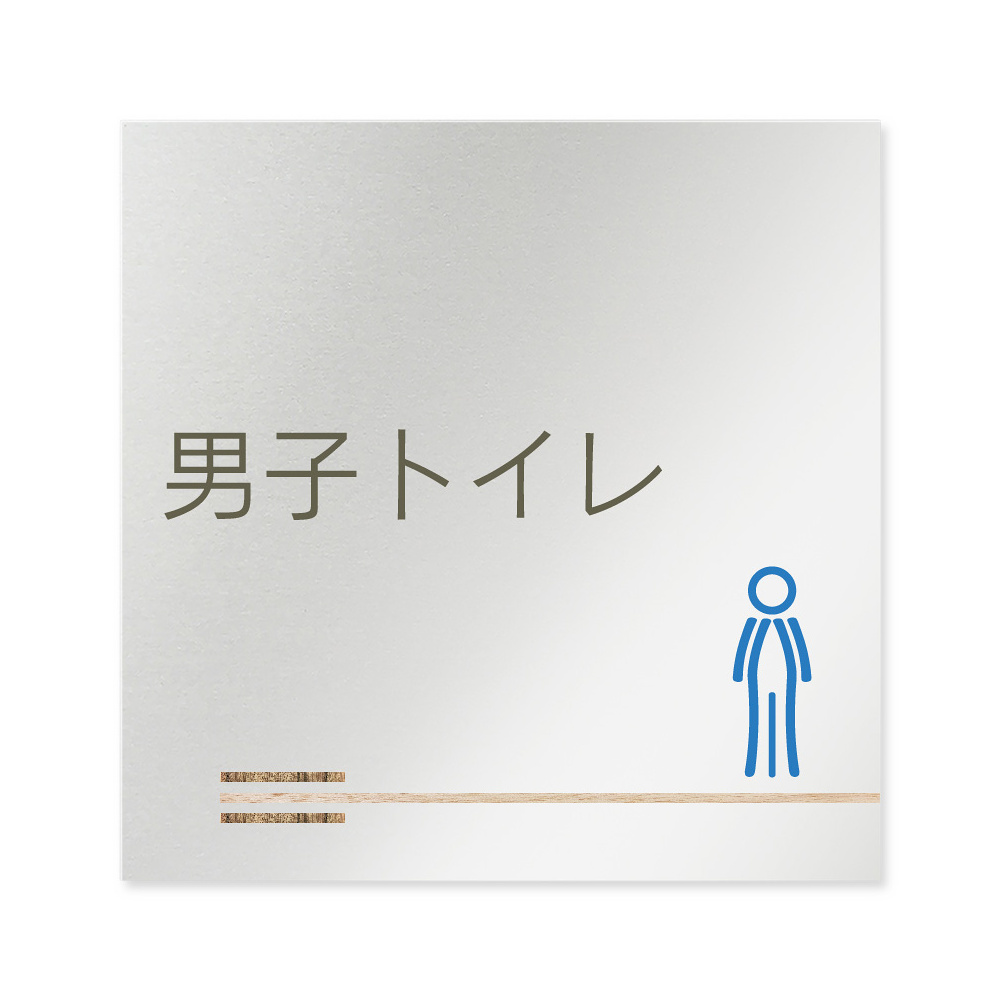 商品説明:デザイナールームプレート 会社向け 木目横帯 男子トイレ2 アルミ板 W150×H150 (AL-1515-OB-IM1-0104)