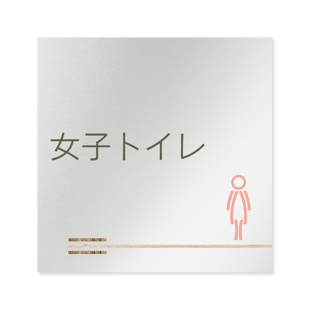 デザイナールームプレート 会社向け 木目横帯 女子トイレ2 アルミ板 W150×H150 (AL-1515-OB-IM1-0106)