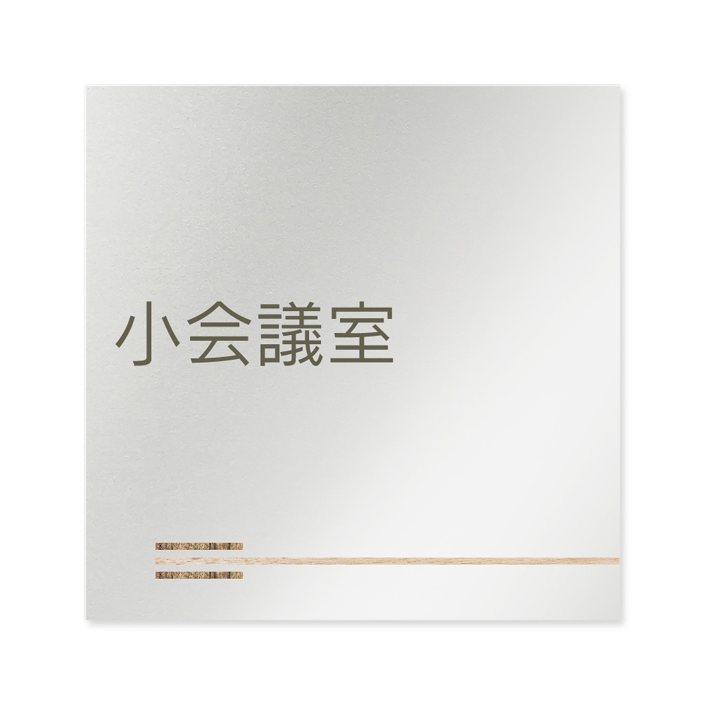 デザイナールームプレート 会社向け 木目横帯 小会議室 アルミ板 W150×H150 (AL-1515-OB-IM1-0110)