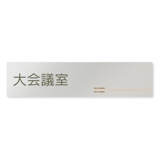 商品説明:デザイナールームプレート 会社向け 木目横帯 大会議室 アルミ板 W250×H60 (AL-2560-OB-IM1-0211)