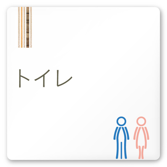 デザイナールームプレート 会社向け 木目縦帯 トイレ2 白マットアクリル W150×H150 (AC-1515-OA-IM2-0102)