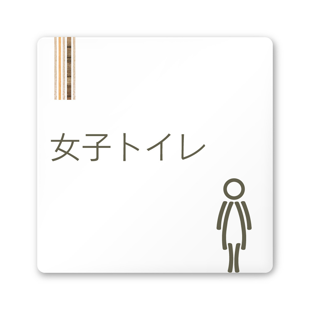 デザイナールームプレート 会社向け 木目縦帯 女子トイレ1 白マットアクリル W150×H150 (AC-1515-OA-IM2-0105)