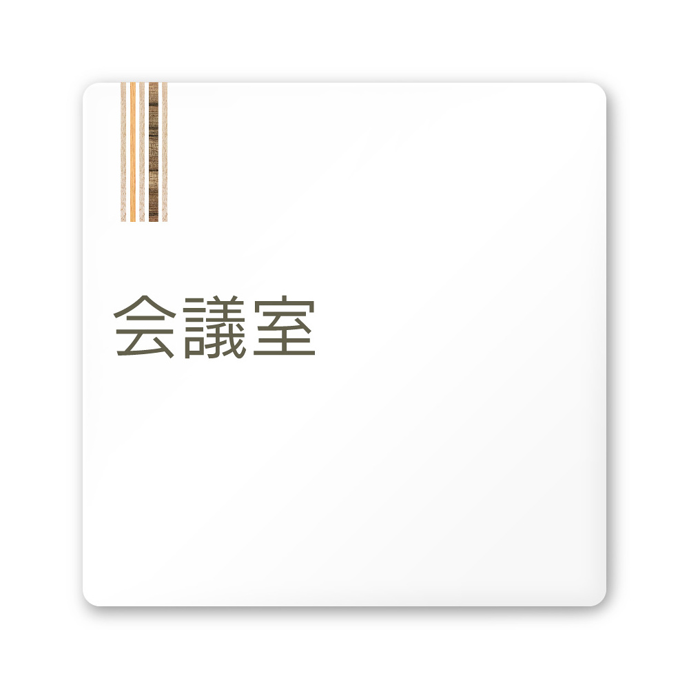 デザイナールームプレート 会社向け 木目縦帯 会議室 白マットアクリル W150×H150 (AC-1515-OA-IM2-0112)