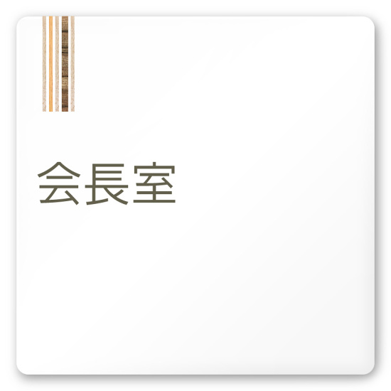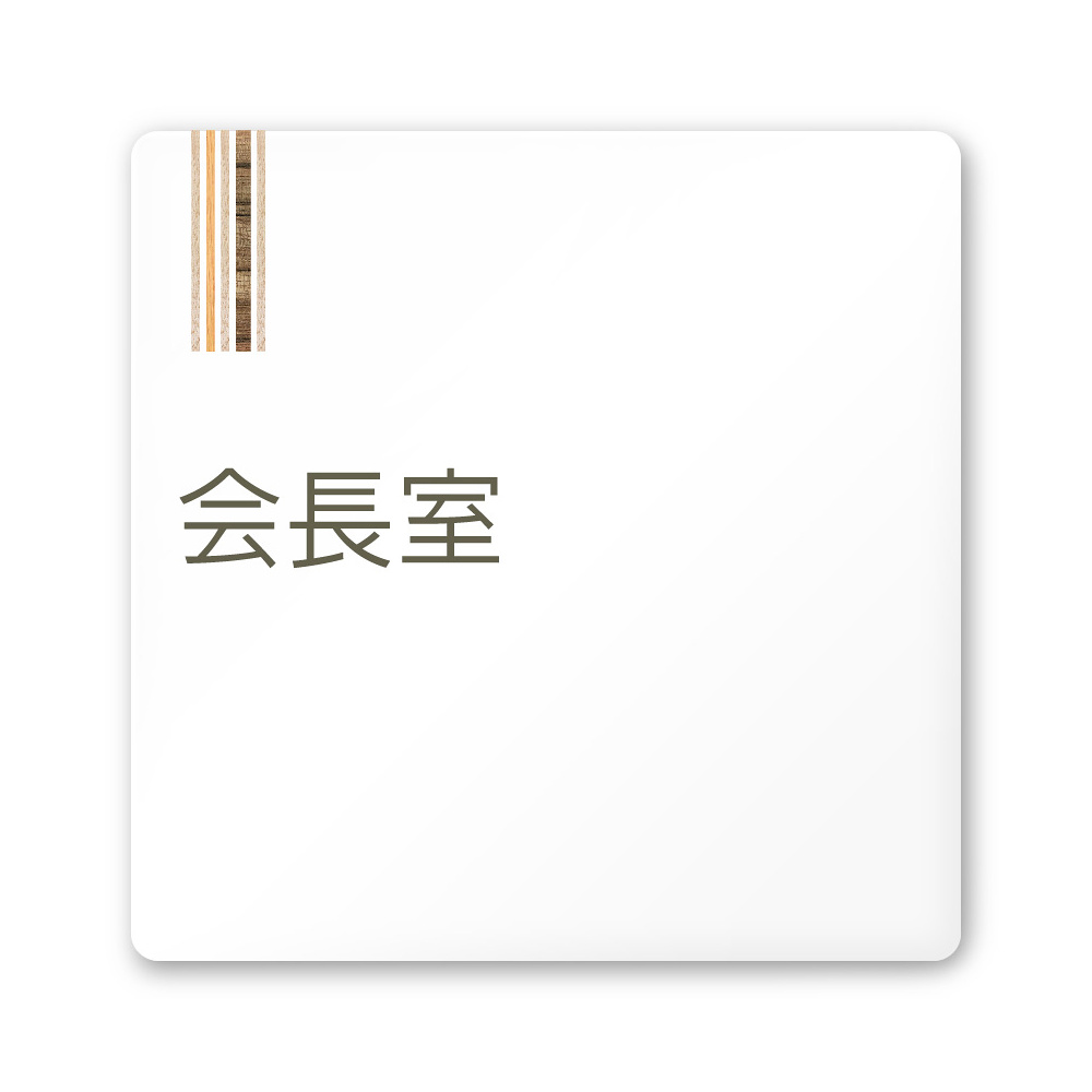 デザイナールームプレート 会社向け 木目縦帯 会長室 白マットアクリル W150×H150 (AC-1515-OA-IM2-0113)