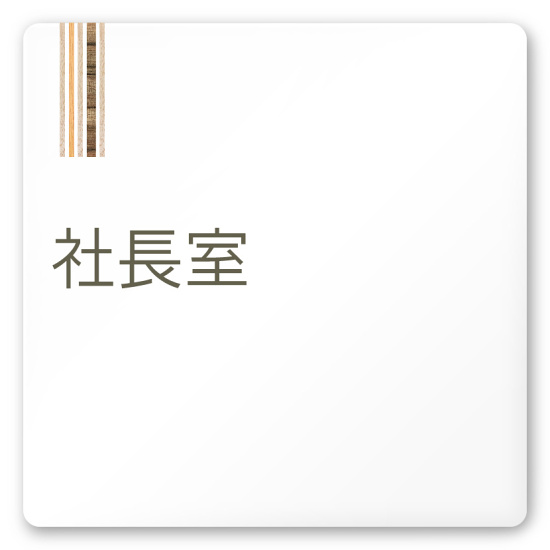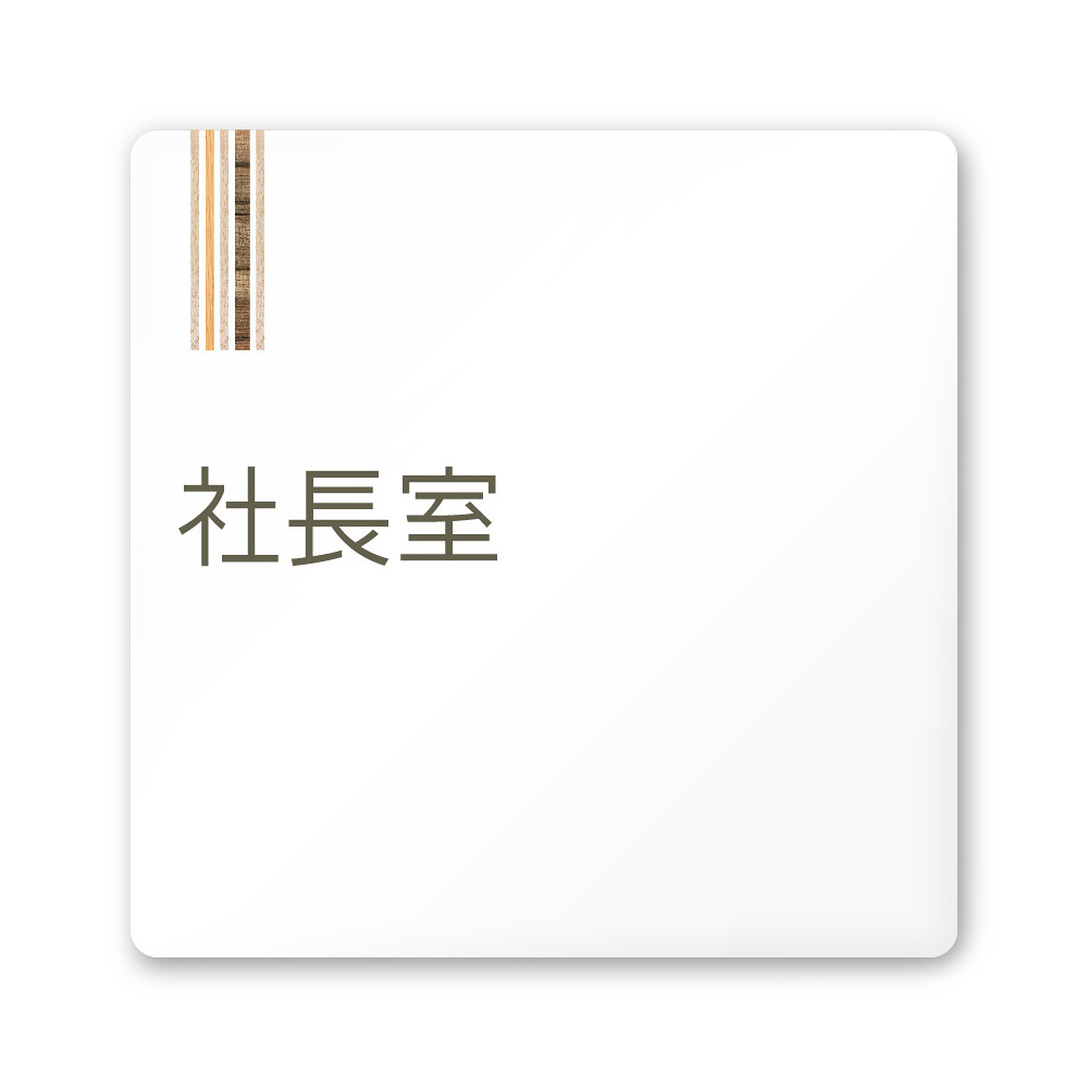 デザイナールームプレート 会社向け 木目縦帯 社長室 白マットアクリル W150×H150 (AC-1515-OA-IM2-0114)