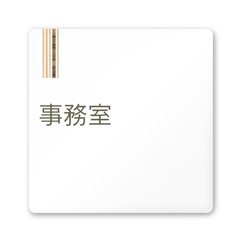 デザイナールームプレート 会社向け 木目縦帯 事務室 白マットアクリル W150×H150 (AC-1515-OA-IM2-0115)