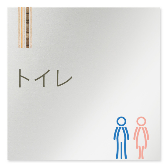 デザイナールームプレート 会社向け 木目縦帯 トイレ2 アルミ板 W150×H150 (AL-1515-OB-IM2-0102)