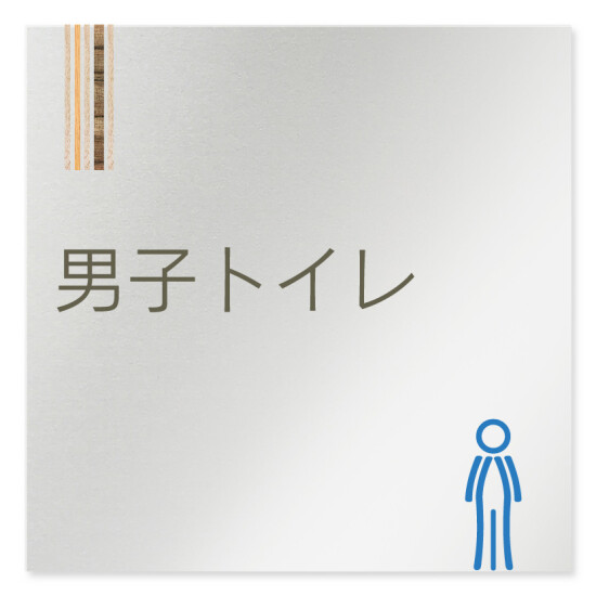 - デザイナールームプレート 会社向け 木目縦帯 男子トイレ2 アルミ板 W150×H150 (AL-1515-OB-IM2-0104)
