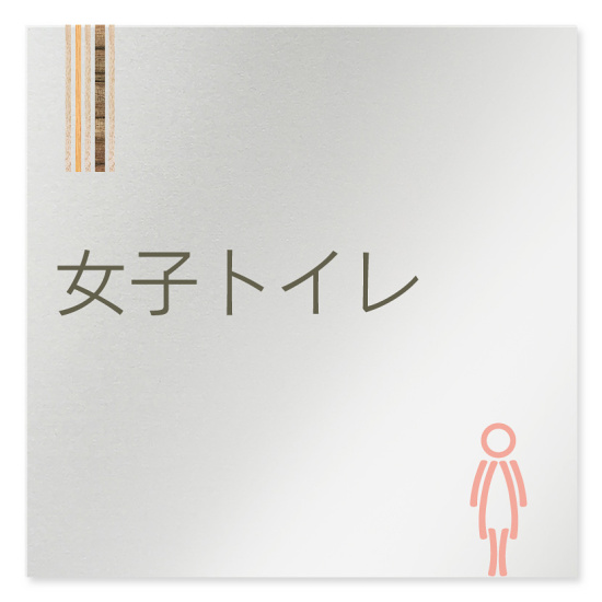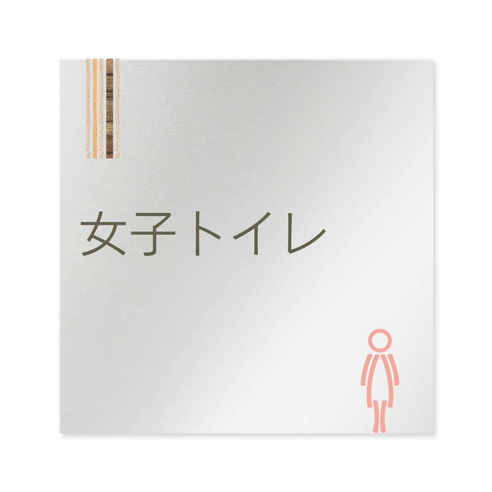 デザイナールームプレート 会社向け 木目縦帯 女子トイレ2 アルミ板 W150×H150 (AL-1515-OB-IM2-0106)