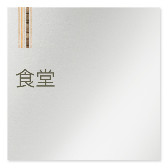 デザイナールームプレート 会社向け 木目縦帯 食堂 アルミ板 W150×H150 (AL-1515-OB-IM2-0117)