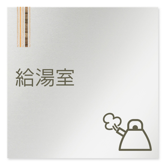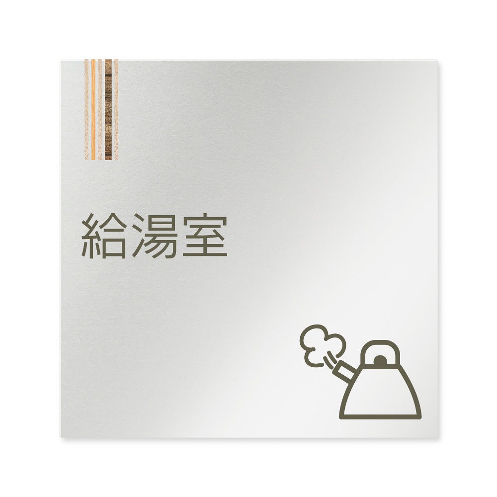 デザイナールームプレート 会社向け 木目縦帯 給湯室1 アルミ板 W150×H150 (AL-1515-OB-IM2-0119)