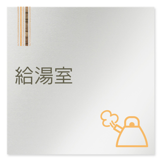 デザイナールームプレート 会社向け 木目縦帯 給湯室2 アルミ板 W150×H150 (AL-1515-OB-IM2-0120)