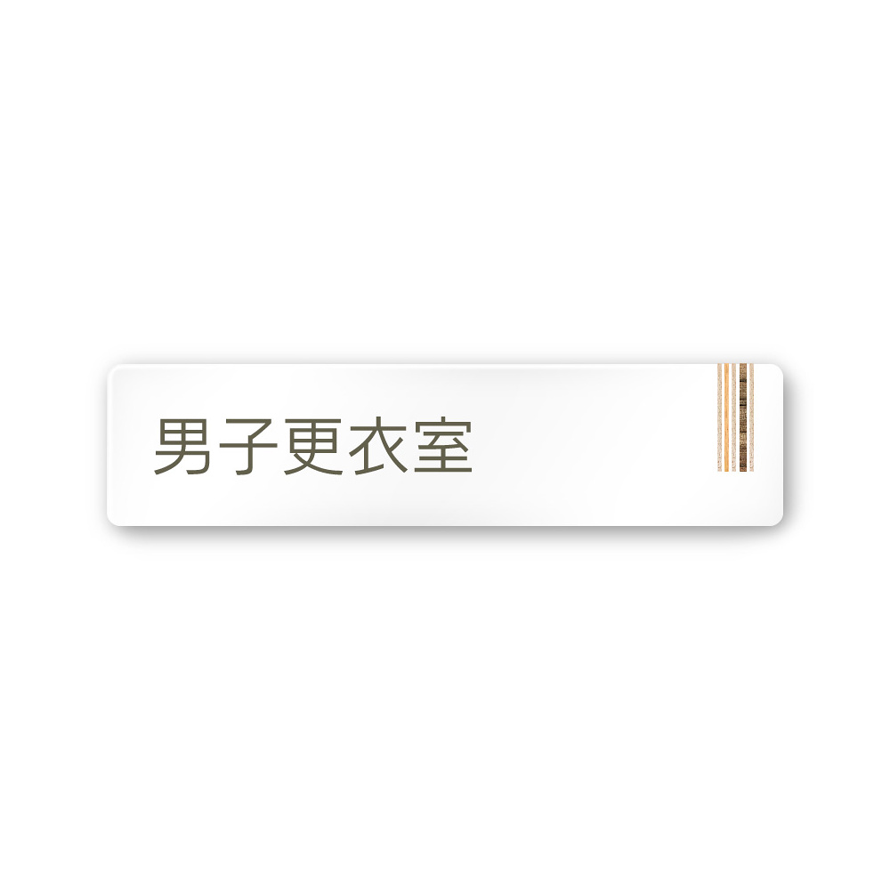 デザイナールームプレート 会社向け 木目縦帯 男子更衣室 白マットアクリル W250×H60 (AC-2560-OA-IM2-0208)