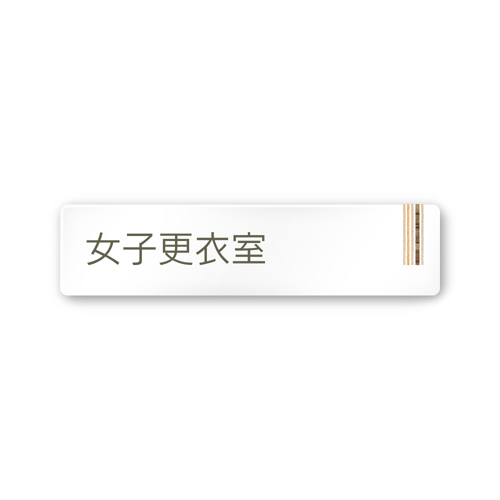 デザイナールームプレート 会社向け 木目縦帯 女子更衣室 白マットアクリル W250×H60 (AC-2560-OA-IM2-0209)
