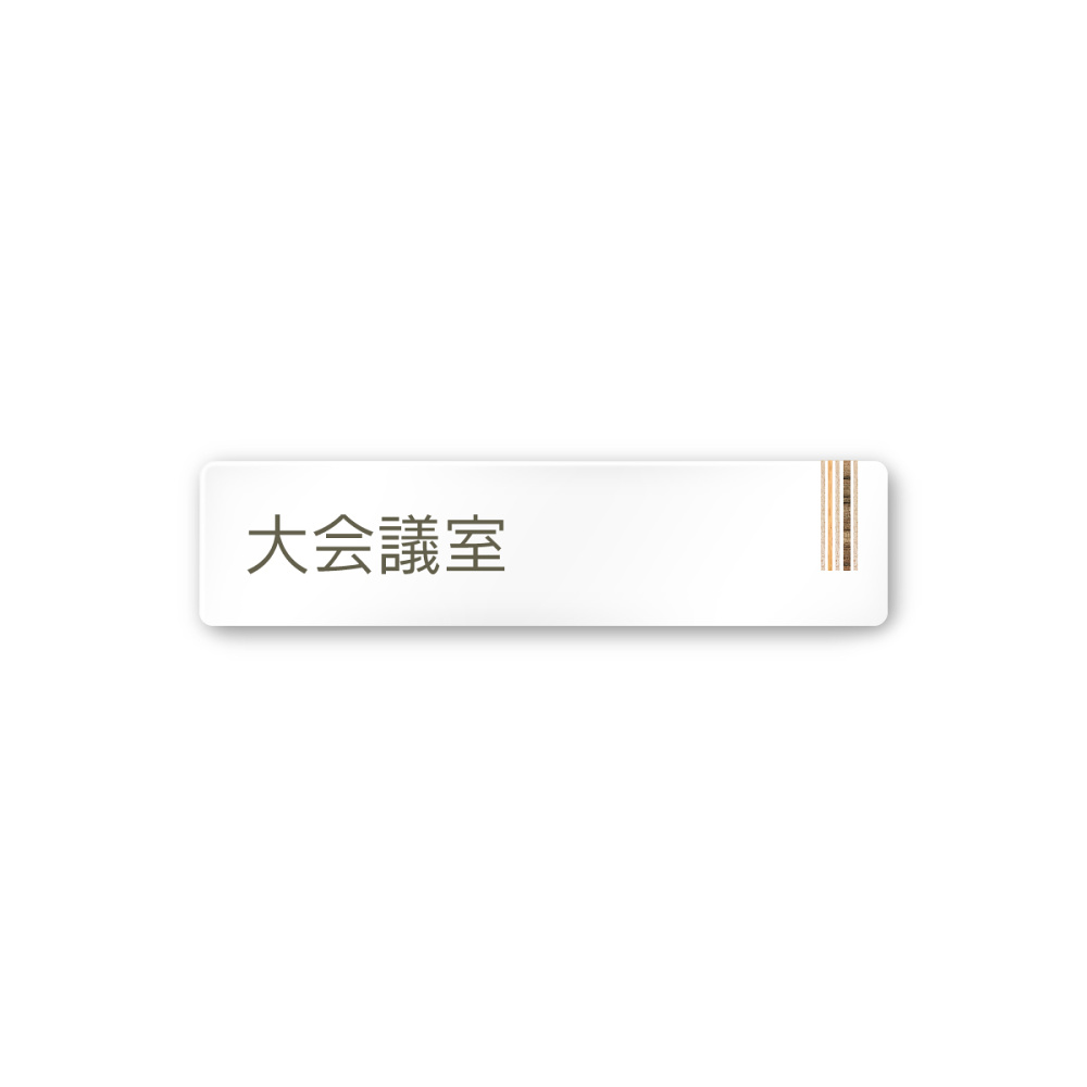 デザイナールームプレート 会社向け 木目縦帯 大会議室 白マットアクリル W250×H60 (AC-2560-OA-IM2-0211)