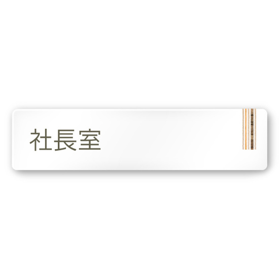 デザイナールームプレート 会社向け 木目縦帯 社長室 白マットアクリル W250×H60 (AC-2560-OA-IM2-0214)