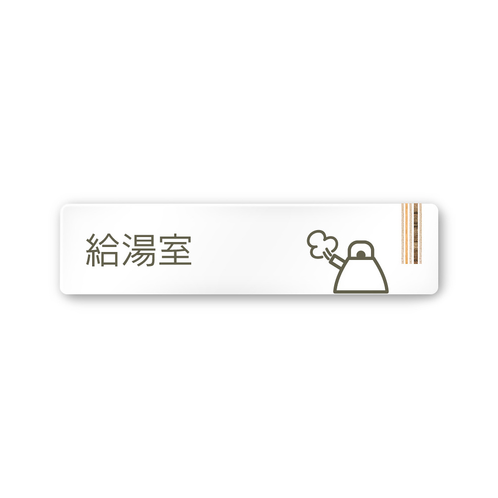 デザイナールームプレート 会社向け 木目縦帯 給湯室1 白マットアクリル W250×H60 (AC-2560-OA-IM2-0219)