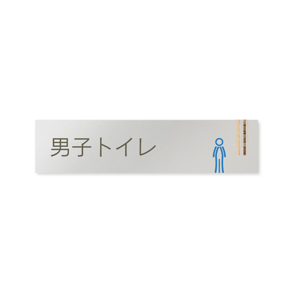 商品説明:デザイナールームプレート 会社向け 木目縦帯 男子トイレ2 アルミ板 W250×H60 (AL-2560-OB-IM2-0204)