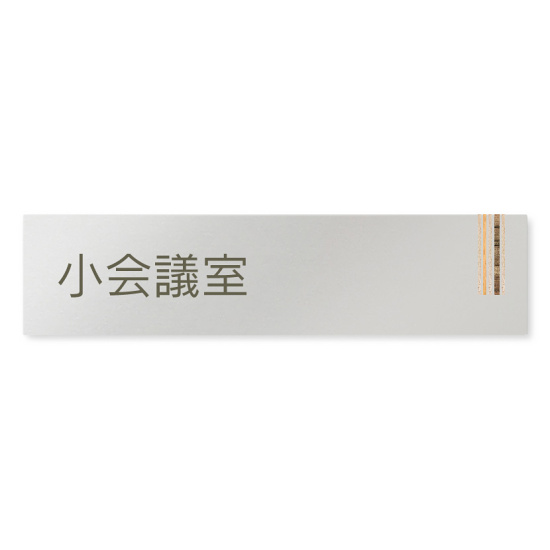 デザイナールームプレート 会社向け 木目縦帯 小会議室 アルミ板 W250×H60 (AL-2560-OB-IM2-0210)