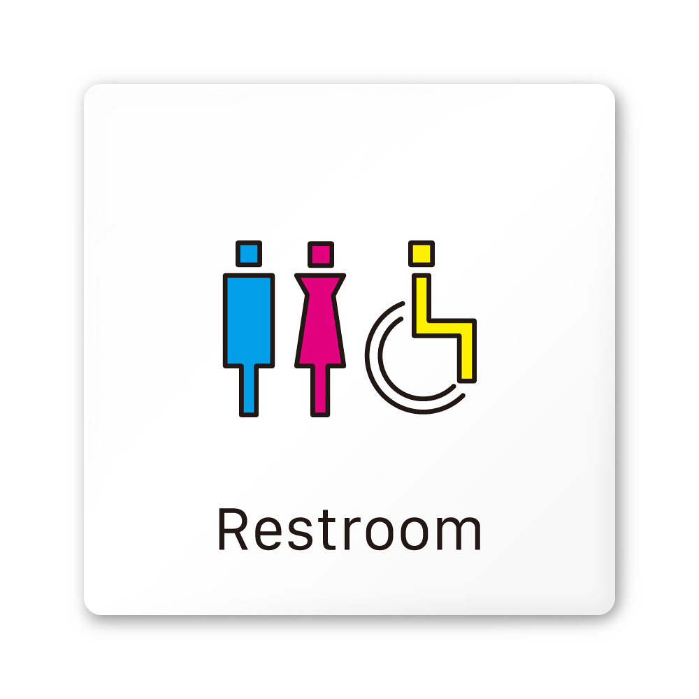 商品説明:デザイナールームプレート 会社向け ビビット トイレ1 白マットアクリル W150×H150 (AC-1515-OA-IM3-0101)