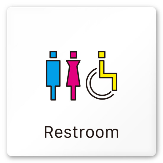 デザイナールームプレート 会社向け ビビット 女子トイレ1 白マットアクリル W150×H150 (AC-1515-OA-IM3-0105) ¥5,500 税込