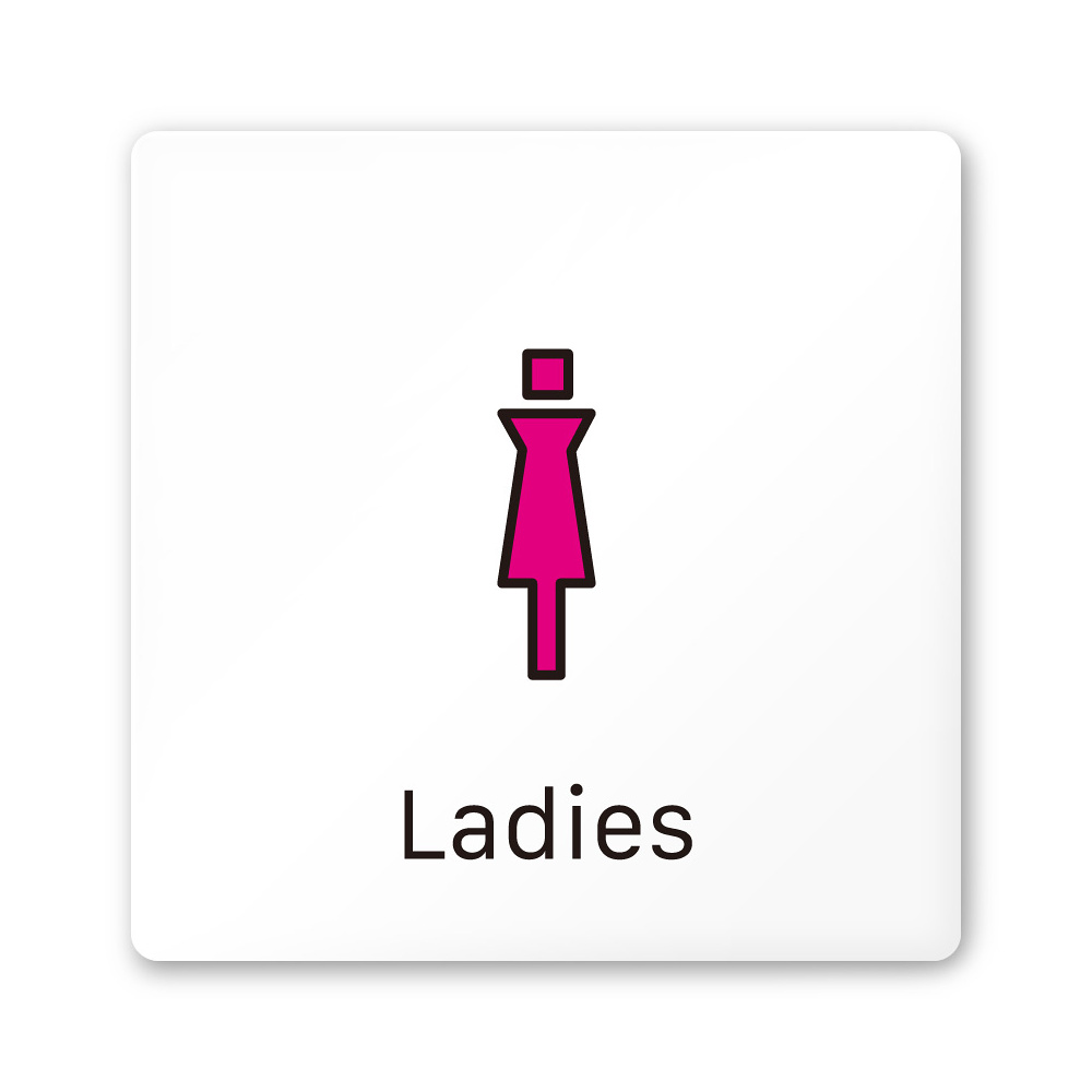 商品説明:デザイナールームプレート 会社向け ビビット 女子トイレ1 白マットアクリル W150×H150 (AC-1515-OA-IM3-0105)