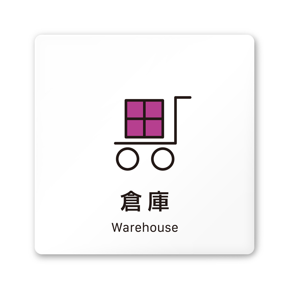 デザイナールームプレート 会社向け ビビット 倉庫 白マットアクリル W150×H150 (AC-1515-OA-IM3-0118)