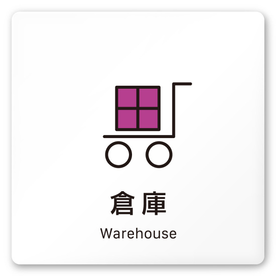 商品説明:デザイナールームプレート 会社向け ビビット 倉庫 白マットアクリル W150×H150 (AC-1515-OA-IM3-0118)