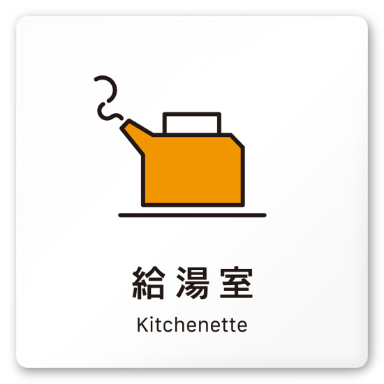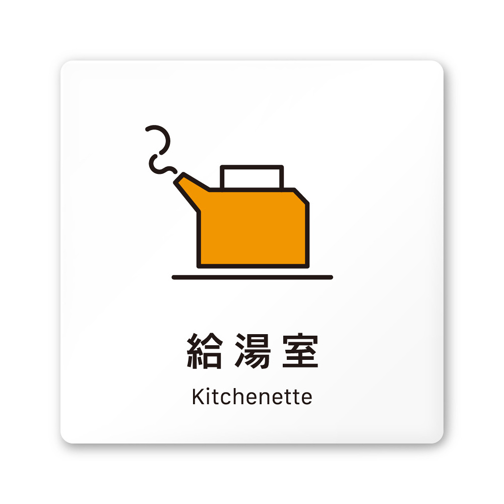 デザイナールームプレート 会社向け ビビット 給湯室2 白マットアクリル W150×H150 (AC-1515-OA-IM3-0120)