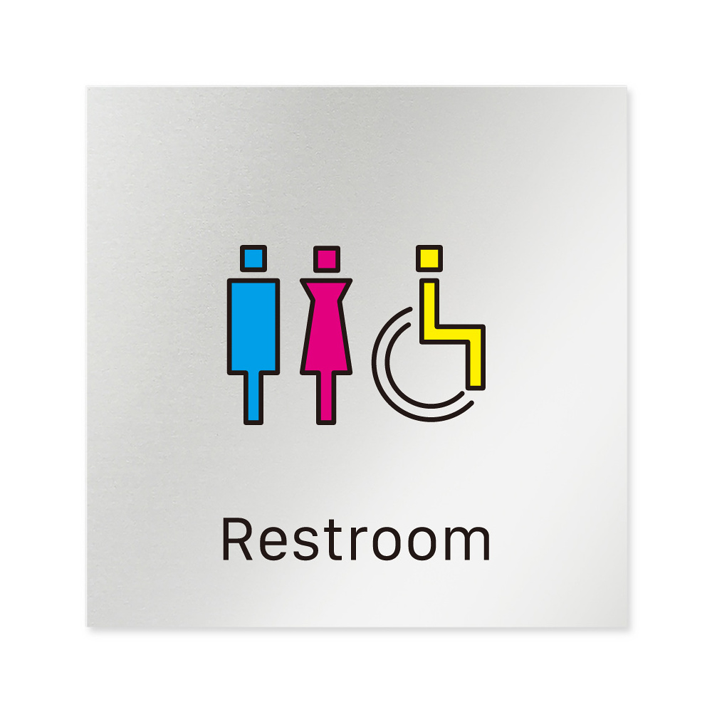 商品説明:デザイナールームプレート 会社向け ビビット トイレ1 アルミ板 W150×H150 (AL-1515-OB-IM3-0101)