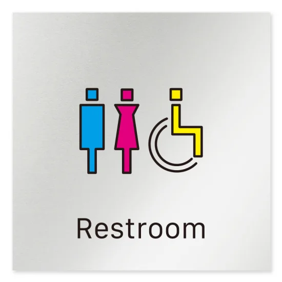 よくある質問:デザイナールームプレート 会社向け ビビット トイレ1 アルミ板 W150×H150 (AL-1515-OB-IM3-0101)