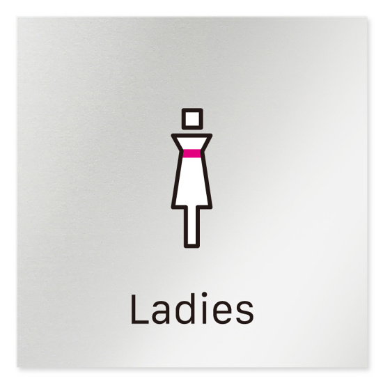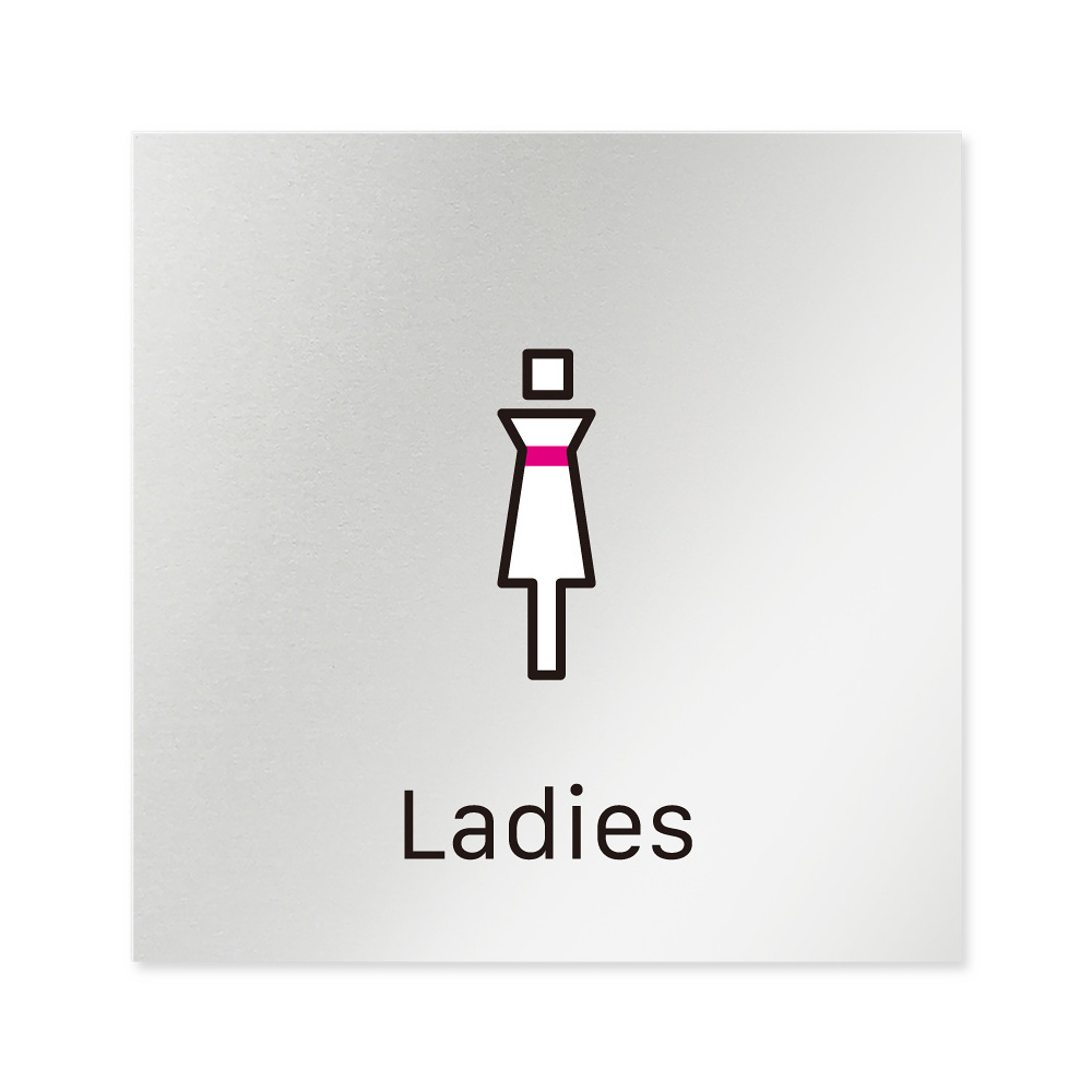 商品説明:デザイナールームプレート 会社向け ビビット 女子トイレ2 アルミ板 W150×H150 (AL-1515-OB-IM3-0106)