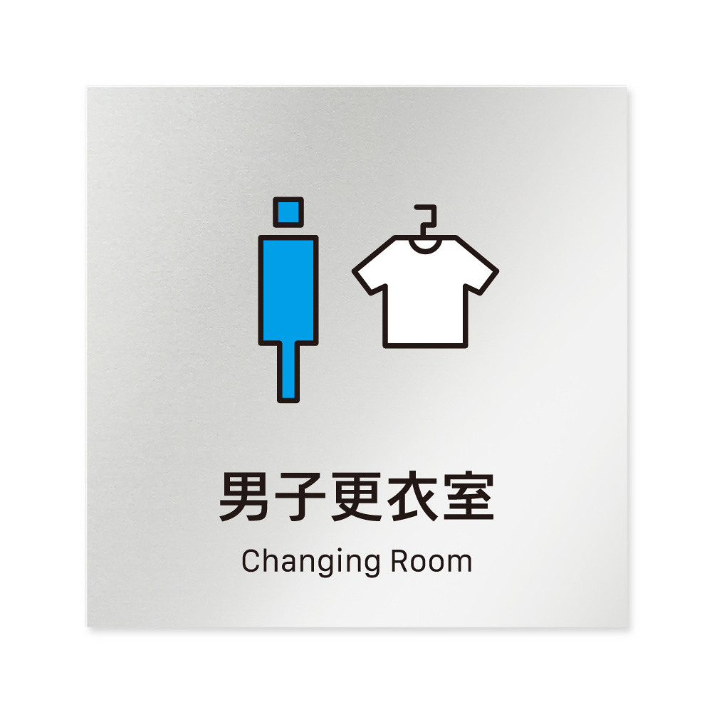 デザイナールームプレート 会社向け ビビット 男子更衣室 アルミ板 W150×H150 (AL-1515-OB-IM3-0108)