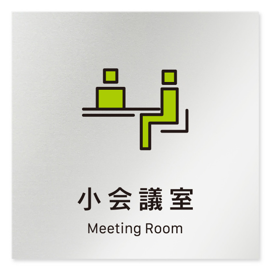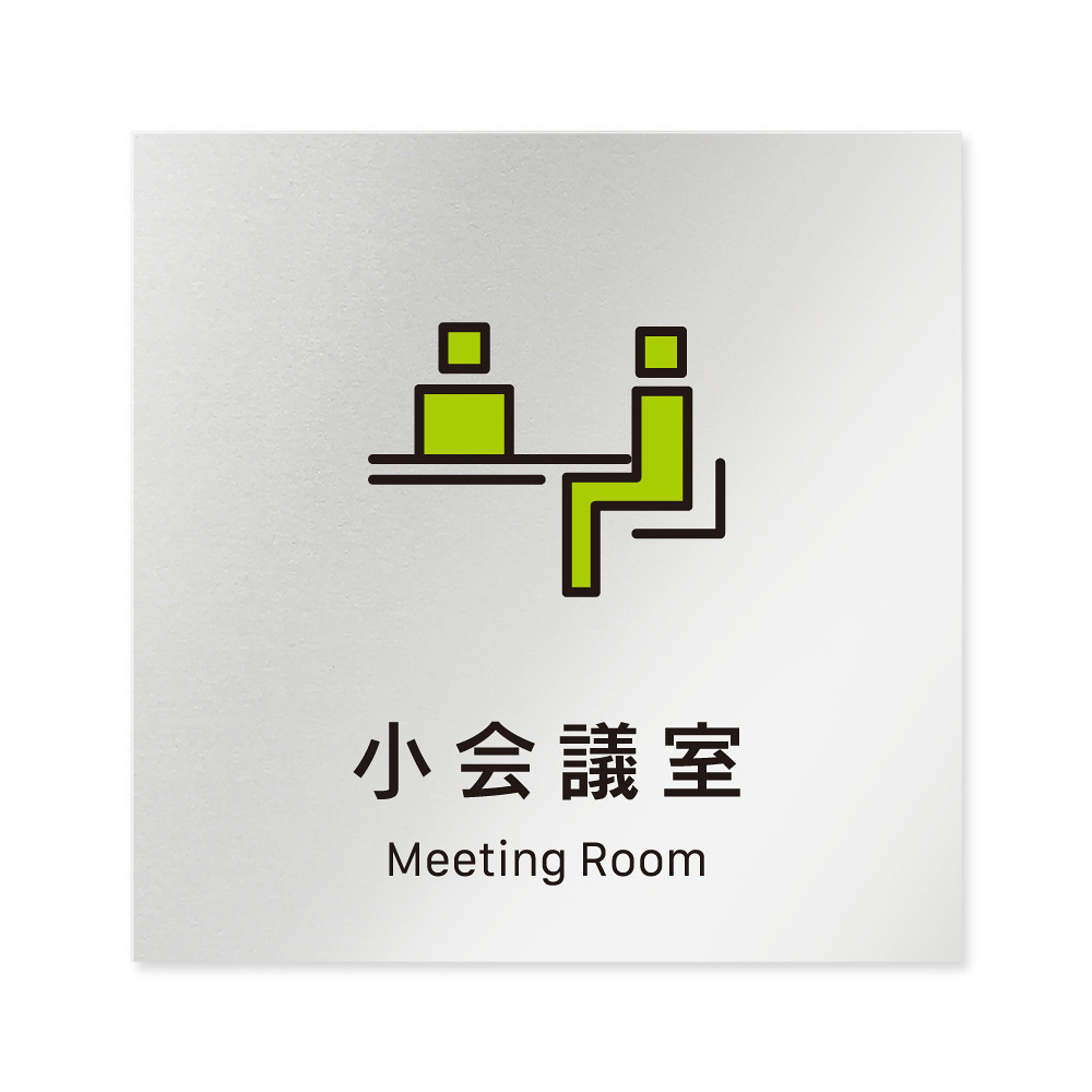 商品説明:デザイナールームプレート 会社向け ビビット 小会議室 アルミ板 W150×H150 (AL-1515-OB-IM3-0110)