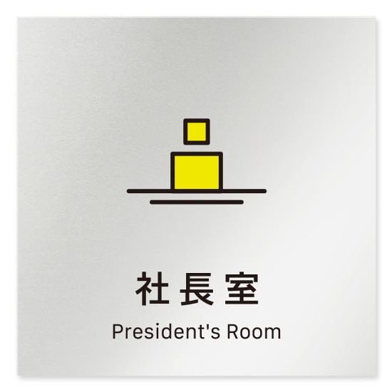 商品説明:デザイナールームプレート 会社向け ビビット 社長室 アルミ板 W150×H150 (AL-1515-OB-IM3-0114)