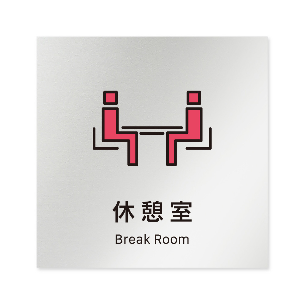 商品説明:デザイナールームプレート 会社向け ビビット 休憩室 アルミ板 W150×H150 (AL-1515-OB-IM3-0116)