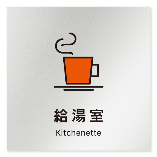 商品説明:デザイナールームプレート 会社向け ビビット 給湯室1 アルミ板 W150×H150 (AL-1515-OB-IM3-0119)