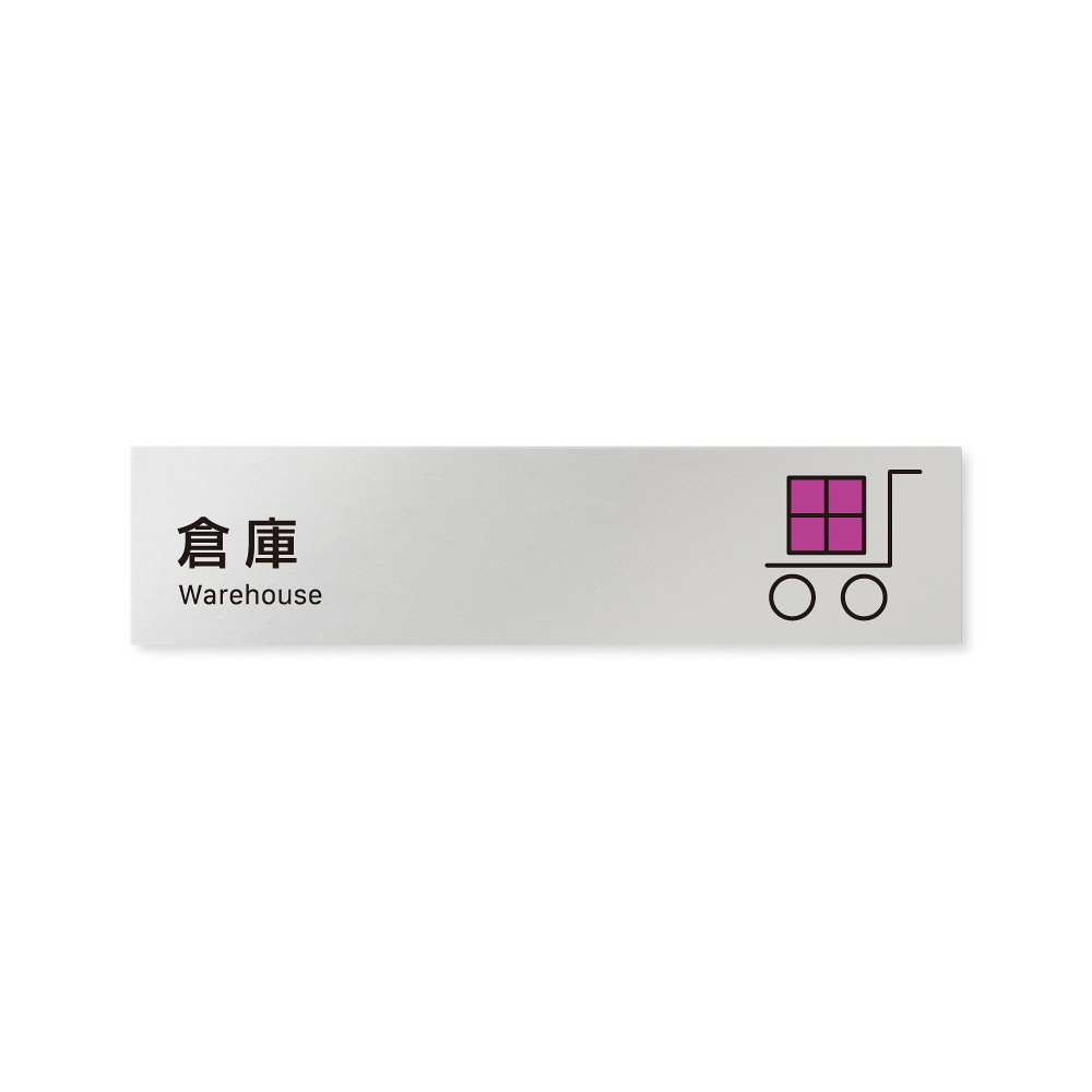 商品説明:デザイナールームプレート 会社向け ビビット 倉庫 アルミ板 W250×H60 (AL-1515-OB-IM3-0218)
